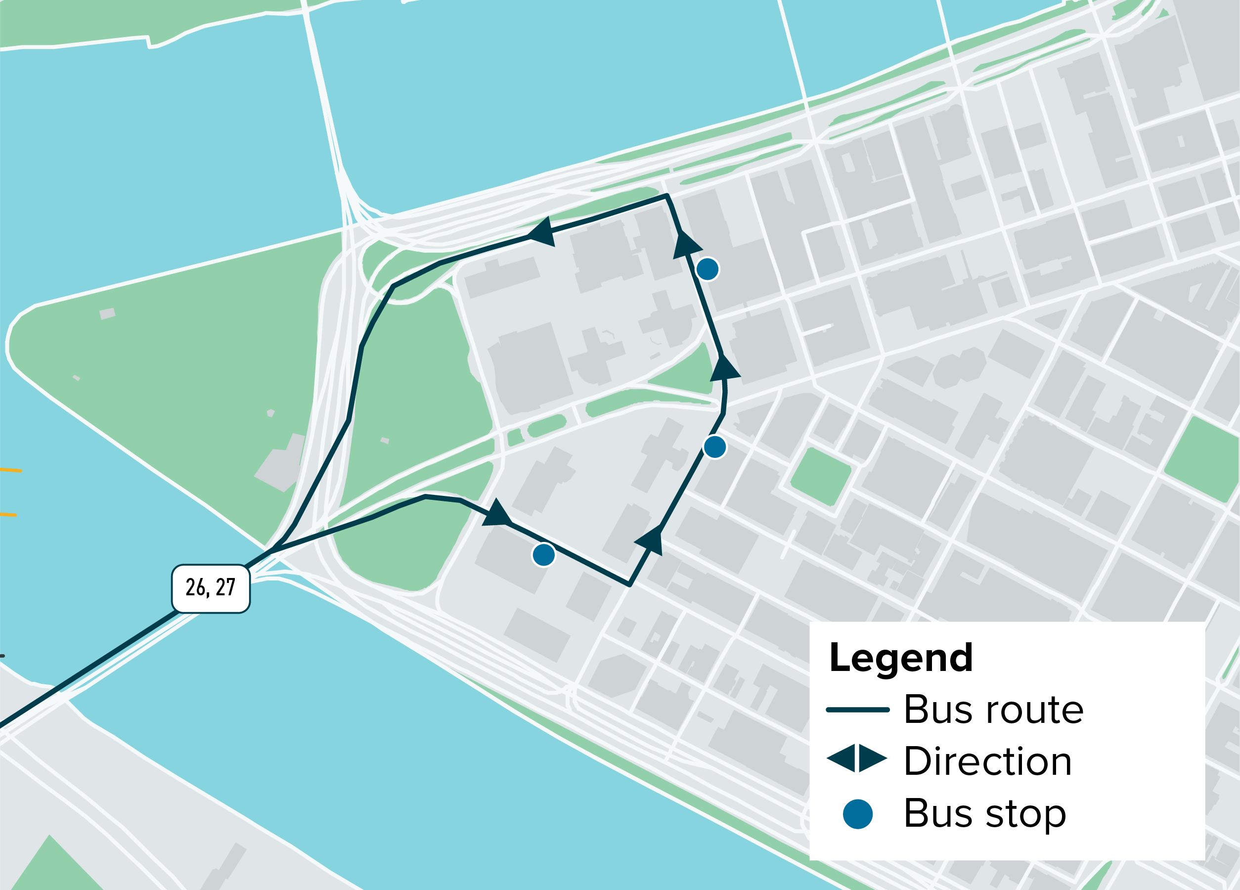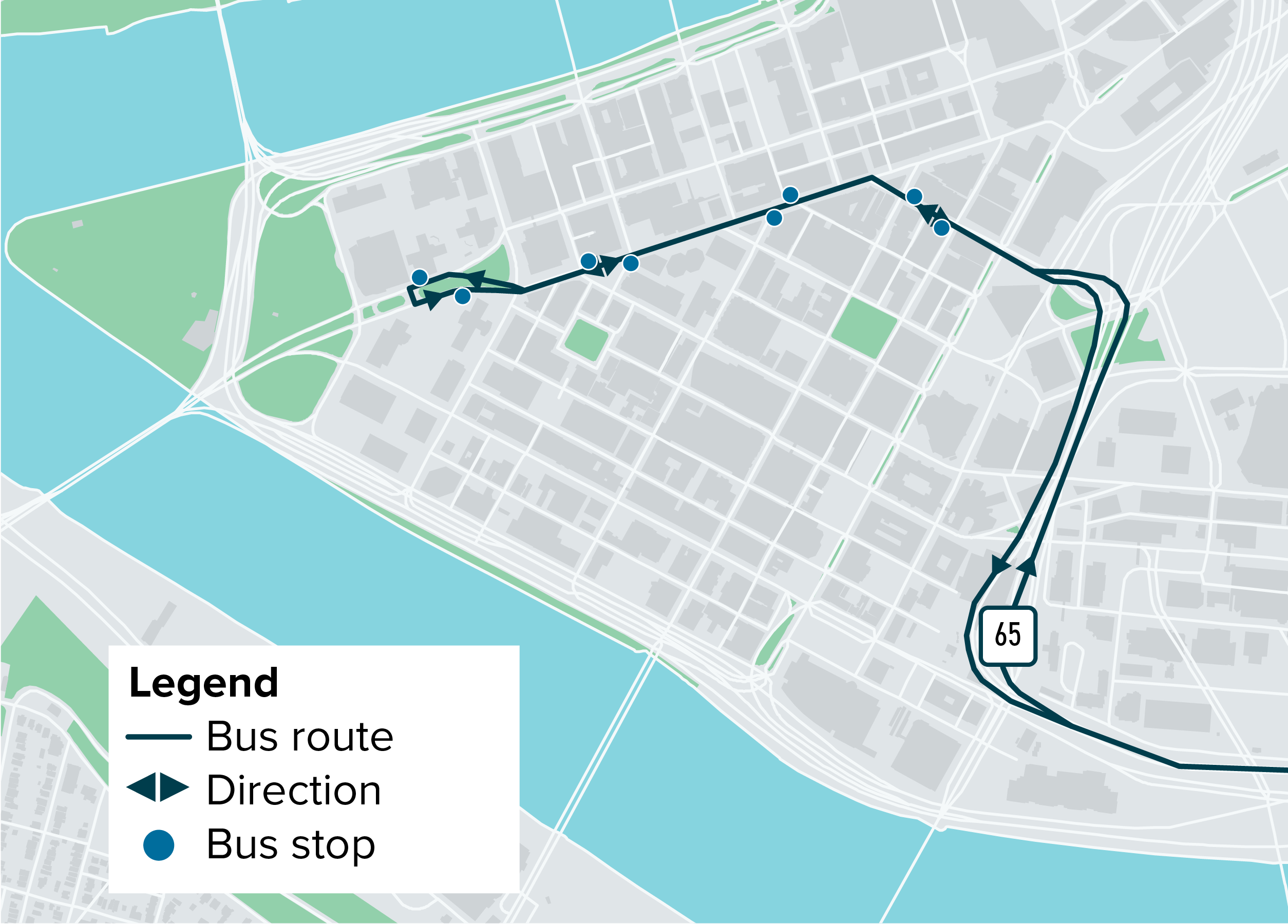 - Route Simplicity: The length and location of route looping can cause lengthy delays in trips while trying to exit Downtown.