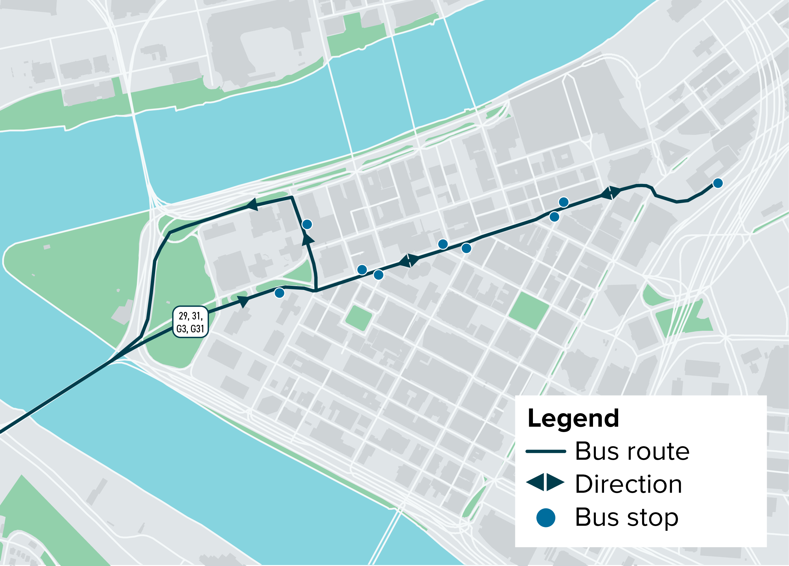 Routes 29, 31, G3, and G31 will now turn right at Stanwix Street to exit Downtown.